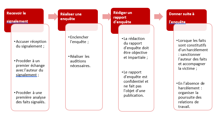 Le déclenchement de l’enquête est automatique et sans délai dès lors qu’il y a des allégations de harcèlement.