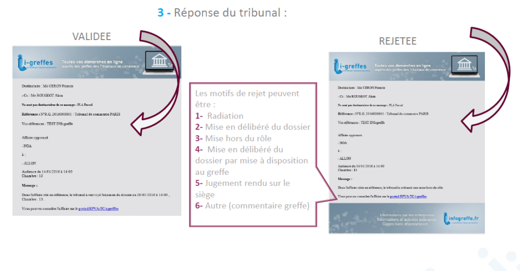 - Sinon, l’ensemble des avocats seront destinataires (qu’ils soient plaidants ou sans qualité) à la condition d’être inscrits à la juridiction.