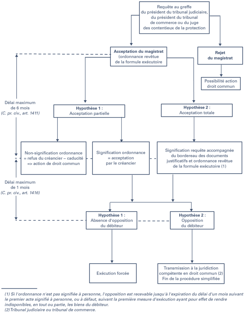 La procédure n’est pas contradictoire, sauf en cas d’opposition. Si aucune opposition n’est formée, l’ordonnance revêt force exécutoire dans le délai d’un mois et permet au créancier de pratiquer une mesure de contrainte.