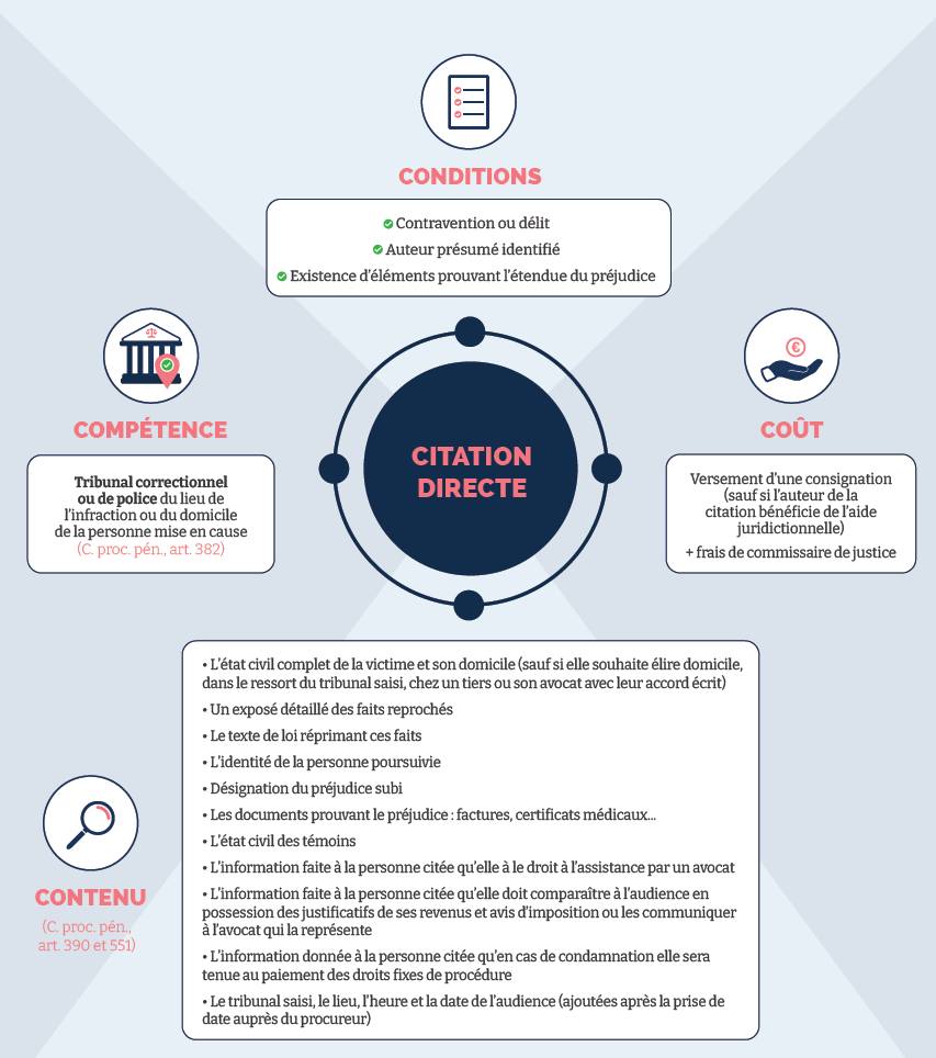La citation directe est une procédure qui permet à la victime (la plaignante) d’une infraction de convoquer directement l’auteur présumé des faits devant le tribunal correctionnel.