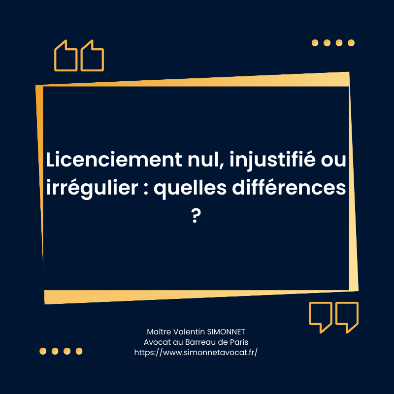 | Licenciement irrégulier | Licenciement SCRS | Licenciement nul | |