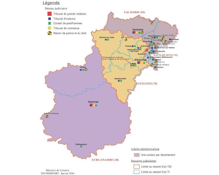 Pour un avocat parisien : ce ressort comprend les ressorts des tribunaux judiciaires de Bobigny, Créteil et Nanterre.